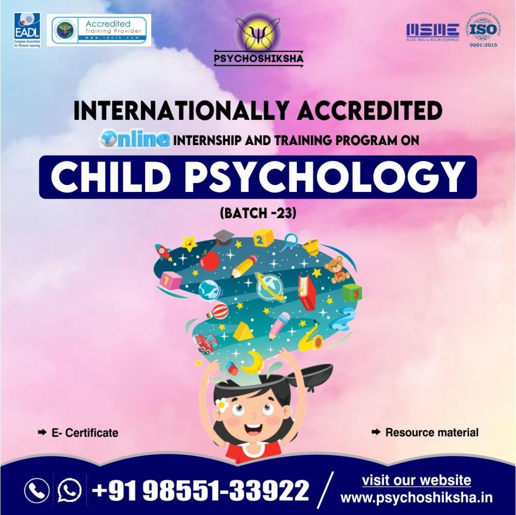 Psychoshiksha (ISO Certified: 9001:2015 and Internationally Certified by the EADL- European Association for Distance Learning and Internationally accredited by IAOTH – International Association Of Therapists) brings an Online ‘Internship/ Training in Child Psychology’ (Batch -23) :